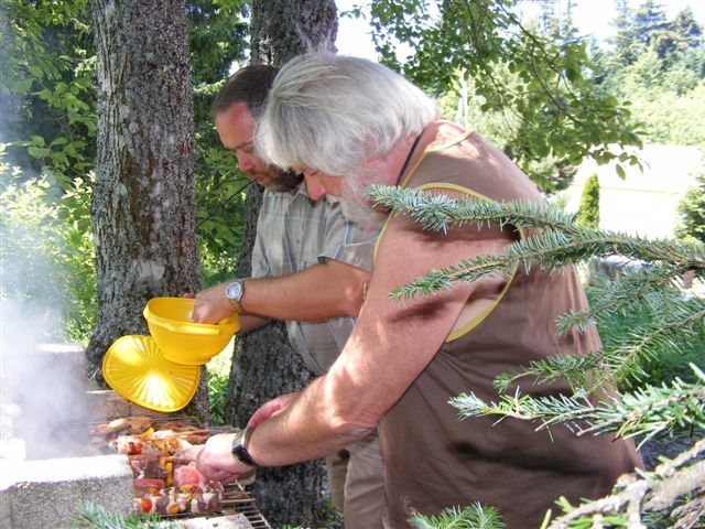 Enfin Ginette, la personne « ressource » de toute l’équipe F5KMY, prépare le supplément que nous attendons tous, le supplément qui améliore le repas tiré du sac. Sans Ginette, il y aurait défection des troupes. Mais avec Ginette, la reprise du trafic est difficile ! Marie F5UAY veille à ce que le matériel technique soit à disposition. Jean Claude surveille le barbecue. Mission accomplie.