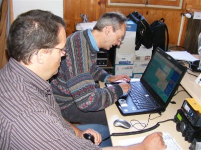 Les travaux d’installation des mâts et des antennes pouvaient commencer avec le coéquipier Bernard F4FUS. Deux bandes étaient retenues pour participer, une antenne 144 Yagi 9 éléments et une antenne 432 MHz 19 éléments. A la différence de quelques participants, la source d’énergie était indépendante du réseau EDF comme l’exige le règlement. Deux batteries auto 12V / Puissance 45 et 52Ah alimentaient les 2 TX : Yaesu FT-897D et Icom IC-706 MK2G délivrant chacun 40 W.