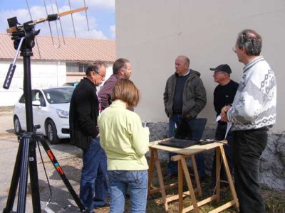Avec Marie F5UAY, Jean-Michel F4CQG, Dominique F1DLW, nous installons le matériel d’écoute : Antenne 400 MHz sur trépied, scanner et les moyens VHF et HF afin de pouvoir joindre les autres groupes d’écouteurs.