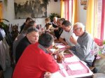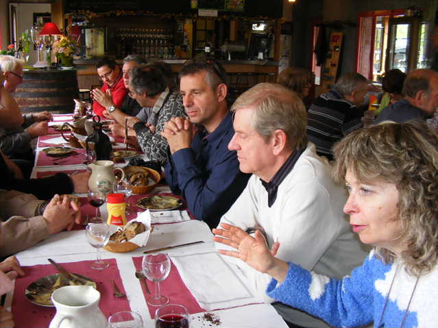 F5HLQ Jean-Claude et Jean-Michel F4CQG démarrent la journée de très bonne heure, mais la propag se montre très capricieuse, ce matin. Elle s’interrompt en plein QSO plongeant les opérateurs dans le brouhaha des QRM. Difficile quelques fois de recevoir les reports radio. Christophe, SWL passionné se voit réquisitionné au log par Marie F5UAY. Puis c’est au tour de Dominique F1DLW de prendre le micro. La persévérance aidant le carnet de trafic continue à se remplir. Avant la réunion du REF 25 dans nos locaux, un groupe d’OM vient se joindre à eux avant de déguster les délicieuses spécialités du Nid D’aigle. On peut dire :