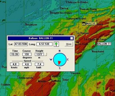 Francis nous a informé que la nacelle s’est posée à proximité de SAVAGNIER situé au Nord-Est de NEUCHATEL.