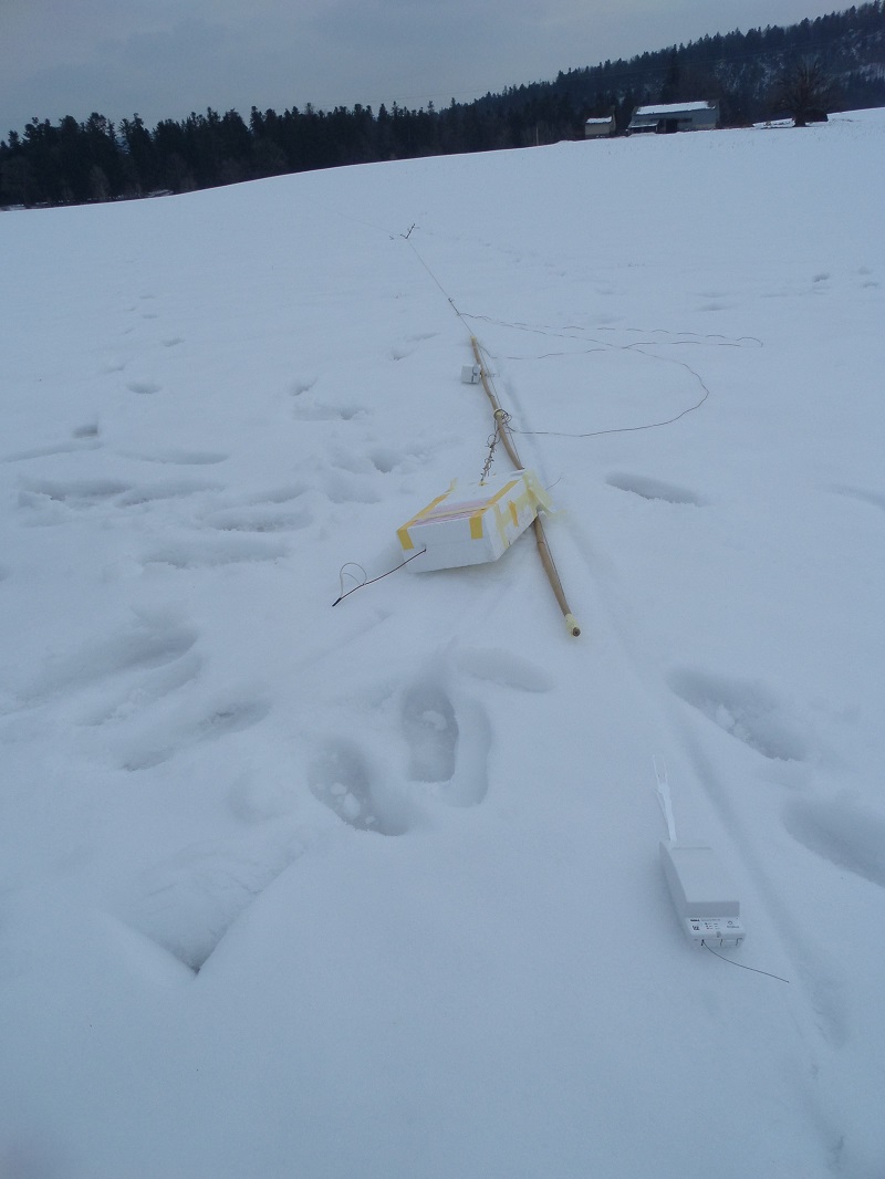 Le week-end dernier les pêcheurs étaient nombreux au bord du Doubs ou des différentes rivières alentour pour l’ouverture de leur sport favori. Rien d’étonnant à cela, ce qui est plus drôle c’est de croiser F5HLQ à la pêche en plein champ ! Non non, il n’a pas perdu le nord, il va à la pêche aux... Radiosondes météo de Payerne ( HB). Depuis le début de la semaine, une dizaine est tombée côté français au plus grand plaisir des spécialistes en goniométrie. La neige recouvre encore la campagne compliquant ainsi la recherche. Il ne faut pas avoir peur de se mouiller pour arriver à ses fins mais le jeu en vaut toujours la chandelle. Mardi à la ferme des Bouts de Nods, c’est un ensemble de 3 sondes qui nous attendaient : Une C34, une Vaisala, et une RS41SG. Mercredi Jean-Claude a déniché une C34 et une ozone, sans parachute, sans enveloppe de ballon, à croire qu’elle est tombée du ciel avec l’averse de neige.