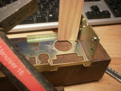 Et c’est partie, enclume, cale en bois et marteau pour la structure en acier et la garniture alu.