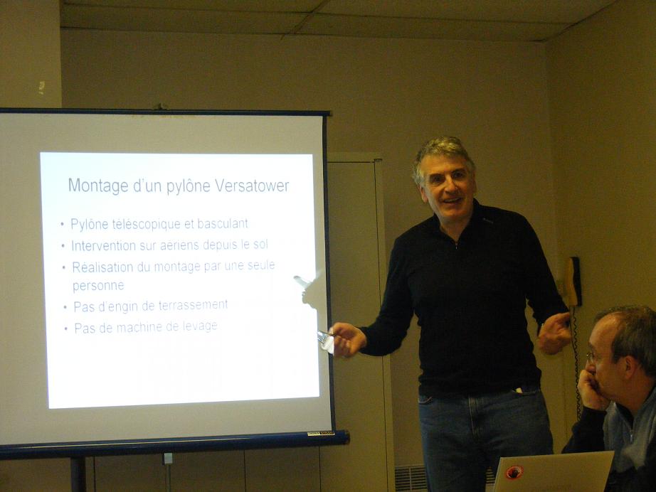 En deuxième partie c’est Jean-Pierre F5OAU qui nous fait part de son expérimentation pour monter le pylône « Versatower » de 12 mètres, télescopique basculant, son montage, sa mise en place réalisés par un OM seul.