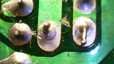 Cette trace de cercle si caractéristique au milieu de la soudure est à surveiller de très très près car elle n’est pas toujours facile à voir, c’est pour ça que j’exerce une petite force sur les pattes, si c’est fragile, ça va craquer.