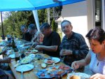 Enfin Ginette, la personne « ressource » de toute l’équipe F5KMY, prépare le supplément que nous attendons tous, le supplément qui améliore le repas tiré du sac. Sans Ginette, il y aurait défection des troupes. Mais avec Ginette, la reprise du trafic est difficile ! Marie F5UAY veille à ce que le matériel technique soit à disposition. Jean Claude surveille le barbecue. Mission accomplie.