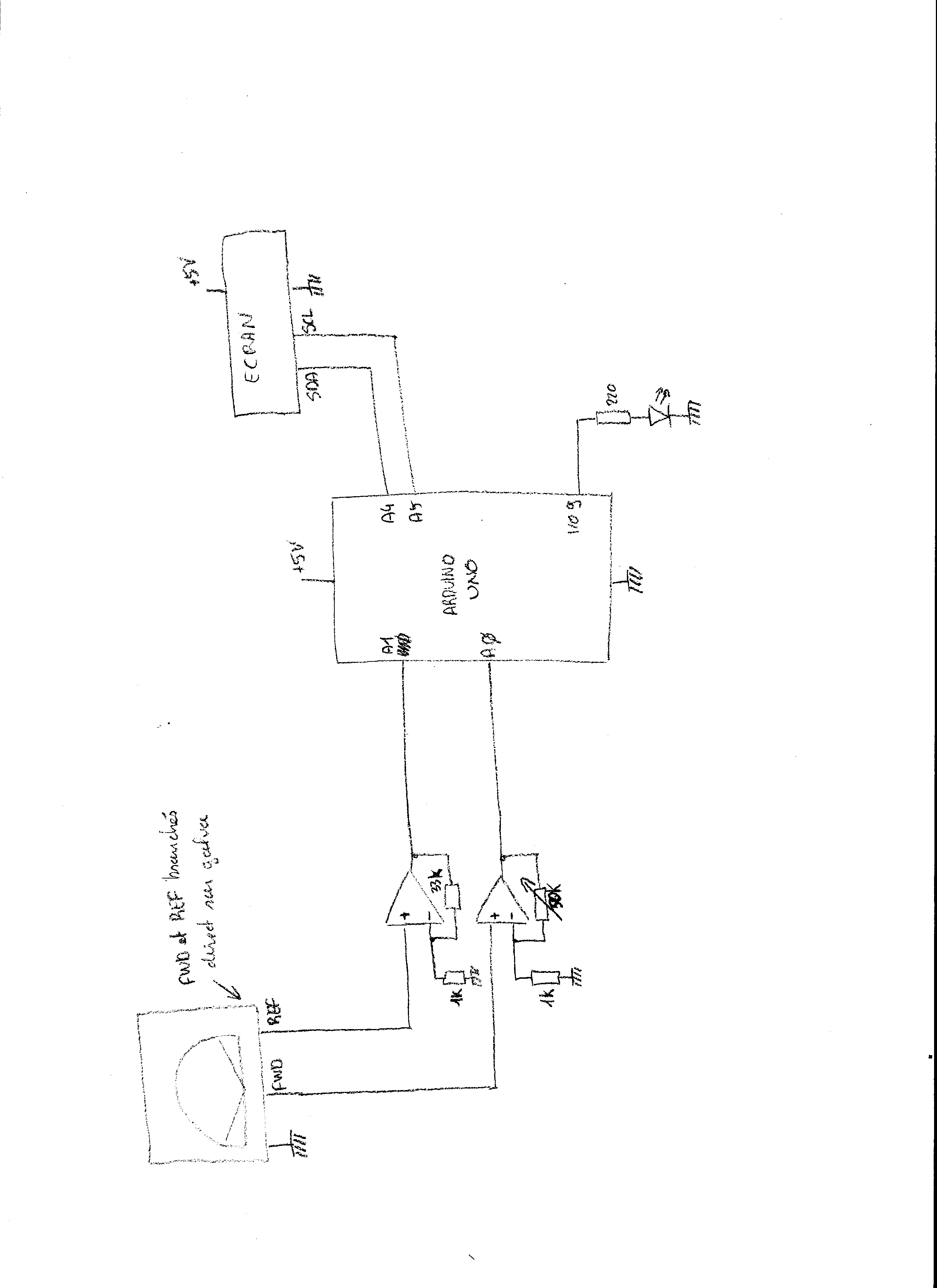 Me voilà donc lancé dans le démontage de mon SX-20, j’ai fais ressortir les signaux sur des prises RCA et après une rapide mesure, je m’aperçois que la déviation complète du galvanomètre arrive à 85mV environ ce qui est trop peu pour le Arduino (pleine échelle à 5V) ; il faut donc adapter.