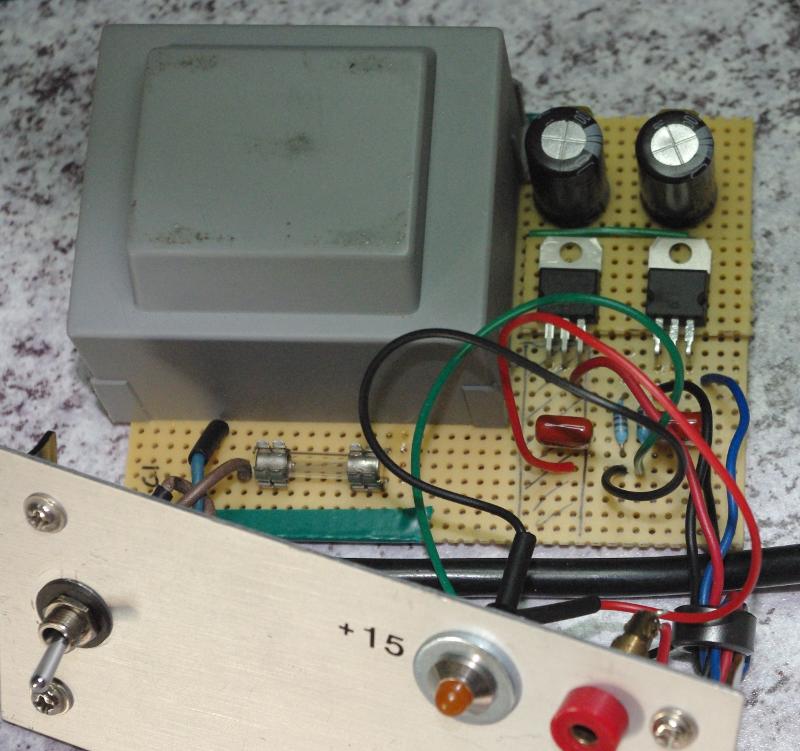 Je vous laisse découvrir les photos, il n’y a aucune difficulté technique et le schéma est simplement celui fourni dans les datasheets des régulateurs 7815 et 7915.