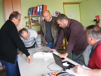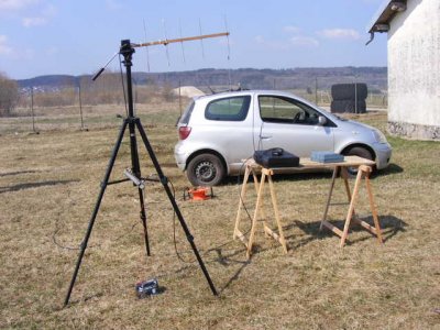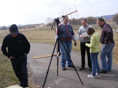 Avec Marie F5UAY, Jean-Michel F4CQG, Dominique F1DLW, nous installons le matériel d’écoute : Antenne 400 MHz sur trépied, scanner et les moyens VHF et HF afin de pouvoir joindre les autres groupes d’écouteurs.