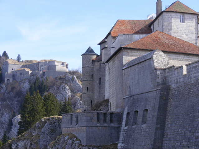 Toujours installés dans la casemate du fort de Joux, nous activons ce week-end, le Fort Mahler, construit en 1830 juste en face pour couvrir le passage de la Cluse et Mijoux. En temps de paix, on comptait 50 personnes officiers y compris, mais en temps de guerre l’effectif passait à 125 personnes. Ce fort est fermé au public, car trop dangereux.