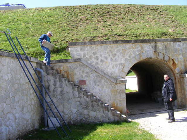 Petite matinée de radio, car nous devons démonter nos installations avant de nous trouver enfermés dans le fort. Le soleil nous accompagne mais le vent est important. En une heure trente, F4CQG et F5UAY comptabilisent 51 contacts dont le département 05. Toujours prêt à rendre service F4EWJ se joint à eux pour le rangement du matériel.