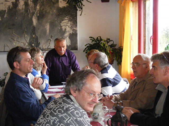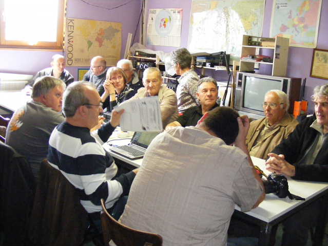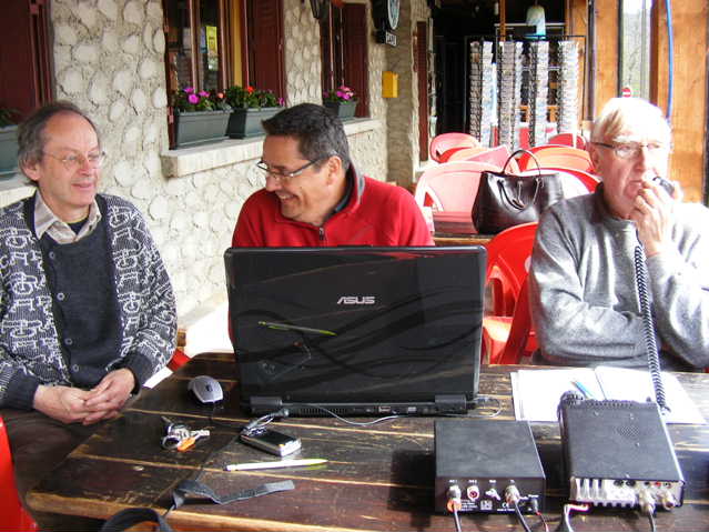 F5HLQ Jean-Claude et Jean-Michel F4CQG démarrent la journée de très bonne heure, mais la propag se montre très capricieuse, ce matin. Elle s’interrompt en plein QSO plongeant les opérateurs dans le brouhaha des QRM. Difficile quelques fois de recevoir les reports radio. Christophe, SWL passionné se voit réquisitionné au log par Marie F5UAY. Puis c’est au tour de Dominique F1DLW de prendre le micro. La persévérance aidant le carnet de trafic continue à se remplir. Avant la réunion du REF 25 dans nos locaux, un groupe d’OM vient se joindre à eux avant de déguster les délicieuses spécialités du Nid D’aigle. On peut dire :