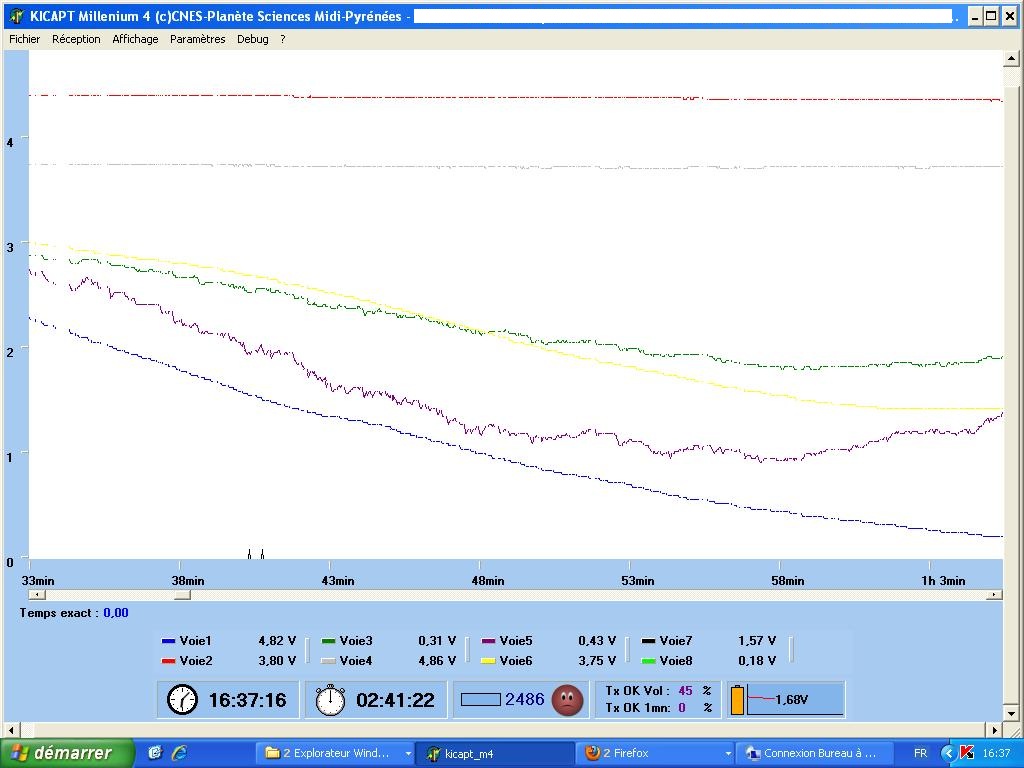 Deux classes de 4e ont pu suivre les variations des télémesures sans cependant pouvoir les interpréter. Vu d’ici, les capteurs ont bien fonctionné.