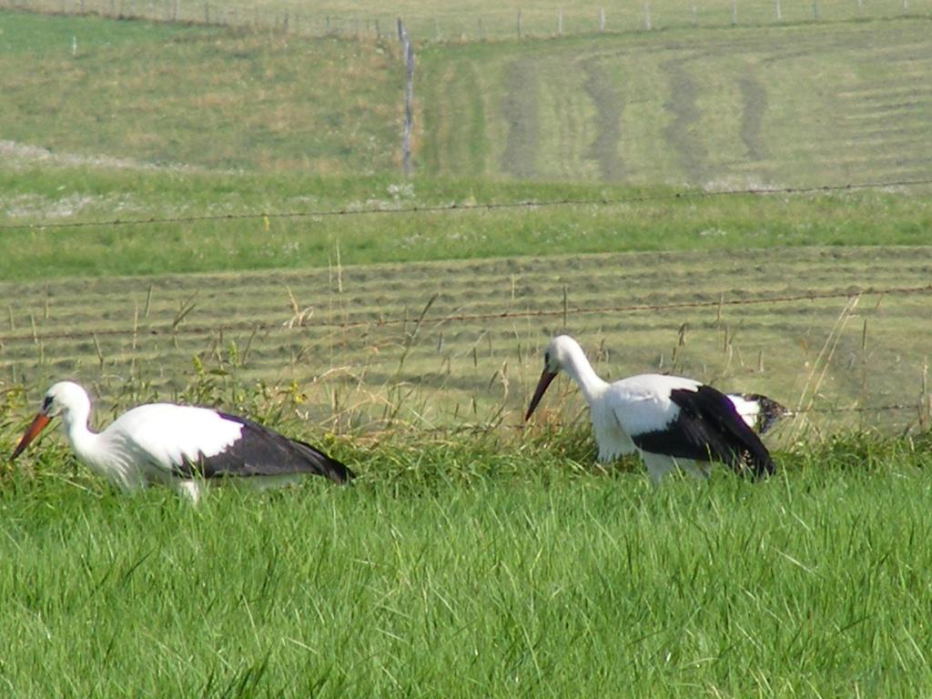 Ce matin, une centaine de cigognes se ravitaillent dans les champs entre Chaffois et Bulle à une dizaine de kilomètres de Pontarlier. Les jours sont comptés pour installer les aériens avant les premiers frimas !!!