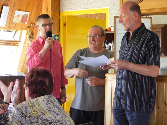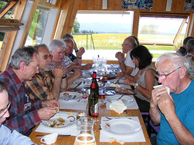 Nous retrouvons ensuite, le groupe de convives, au restaurant du Crêt Monniot. Les Jurassiens se sont joints au Doubiens venus en nombre partager le repas typiquement franc-comtois. Le président François F8FEA prend la parole pour saluer tous les invités. F5OAU reçoit le diplôme pour sa première place au contest de l’IARU VHF André F1JNZ celui de 1ier en 432 MHZ en multi opérateur pour F6KSD radio-club de Besançon. F8GHE invite ensuite tous les volontaires à venir animer le stand RA à la Fête de la science à Besançon du 10 au 14 octobre. La traditionnelle tombola animée par les boutades de Jean-Marc F6DVC fait de très nombreux heureux.