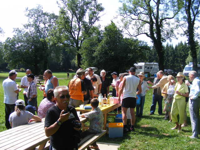 Le soleil, ayant rapidement boosté la température à 25° a poussé très vite les OM à se retrouver autour de l’apéritif offert… Puis chacun à sa convenance, choisit l’ombre ou le plein soleil pour un repas très convivial.