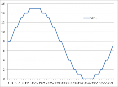 Afin de reconstituer la sinusoïde, plutôt que de confier une charge inutile de calcul au microcontrôleur, j’ai décomposé le signal dans une feuille de calcul Excel :