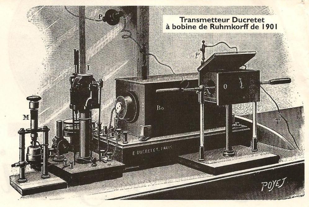 1897 : Ernest ROGER et Eugène DUCRETET sont les premiers constructeurs de matériels. Ce dernier, travaillant en collaboration avec Popov, réalise la première liaison radio entre la Tour Eiffel et le Panthéon. Il produit des appareils de TSF en série destinée à la marine russe.