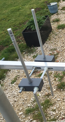 Pour la fixation des réflecteurs, j’ai utilisé de la tige filetée en acier pour la partie extérieure à l’antenne et de la tige filetée en nylon pour la partie qui est à l’intérieur