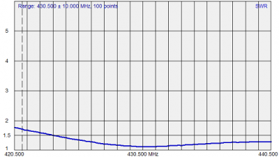 La décision a été de raccourcir le directeur par tranche de 3mm. Cela à permis de centrer de manière très correcte l’antenne sur la fréquence souhaitée. La Longueur finale du radiateur est de 2 x 14,35 cm. La position et les longueurs des directeurs sont restées conforme à la simulation. La position du radiateur reste conforme à la simulation. Par contre pour les réflecteurs nous avons mis a profit les trous oblongs la position est de 12,90 cm au lieu de 11 cm initialement prévu.
