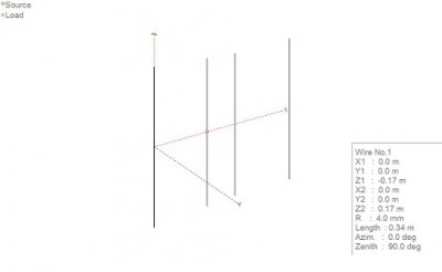 La modélisation la première étude de cette antenne sera réalisée à l’aide du logiciel MMANA. La modélisation est réalisée sur 2 configurations d’antenne Yagi en polarisation vertical une avec un réflecteur unique et l’autre avec un réflecteur multiple.