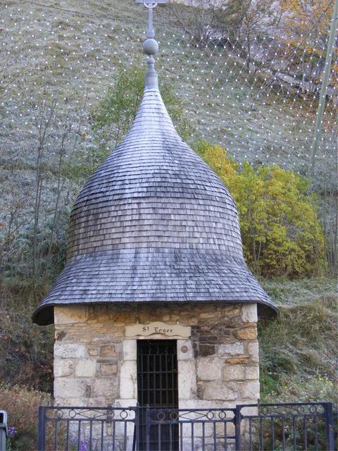 A ses pieds la Chapelle Saint Léger : du 16 ou 17ième siècle. Sa toiture est en tavaillon, ce serait la reproduction d’un casque de Maures. | |