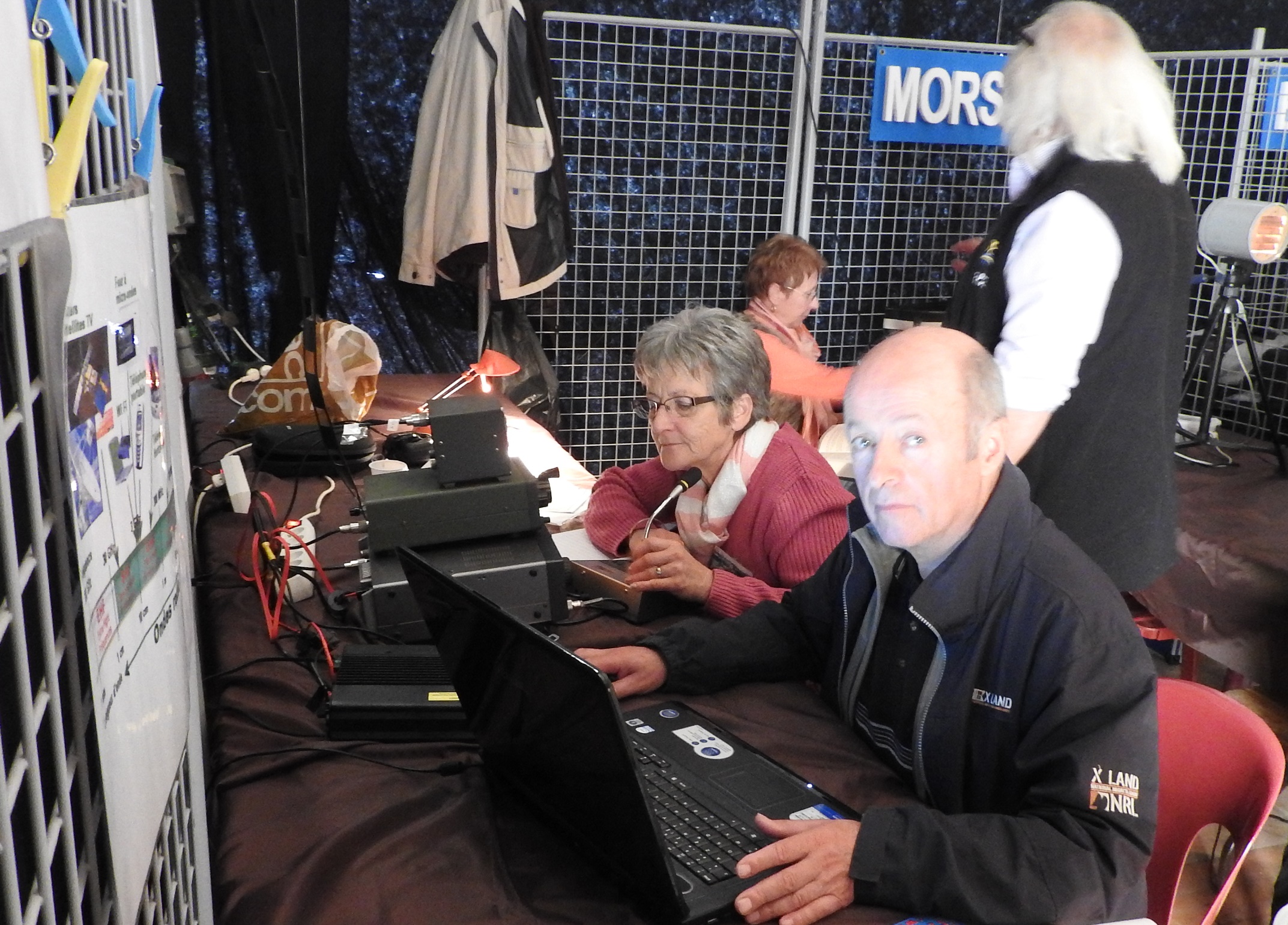 Notre antenne était une levy que les employés de la ville avaient accrochée, avec leur nacelle, à 5 ou 6 m du sol après un lampadaire, puis à une extrémité sous le toit d’un bâtiment désaffecté. L’autre extrémité fut fixée après le vitabri dans lequel nous étions hébergés. Notre TX est toujours le TS570D avec ses 100W et le micro MC 85 dont nous avions réduit la compression au maximum sur les conseils de nos correspondants. Les installations en portable au milieu des manifestations ne sont jamais évidentes, environ 200 enfants étaient en permanence dans notre environnement, autant dire que les piaillements fusaient.
