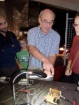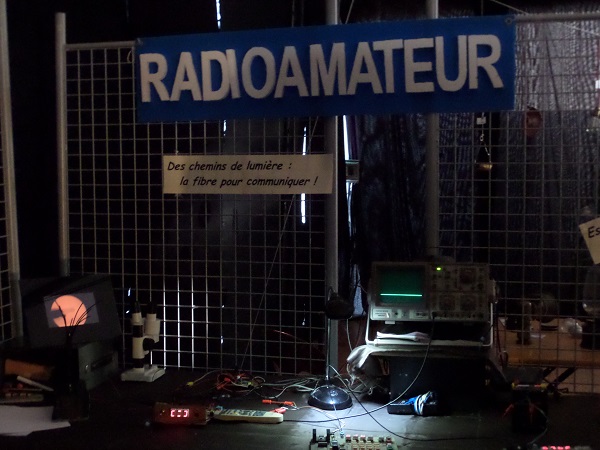 Au même stand, Gérard F1PUZ assurait l’animation de son atelier « des chemins de lumière, ou la fibre pour communiquer », mais aussi « les électrons font-ils de la lumière ? »