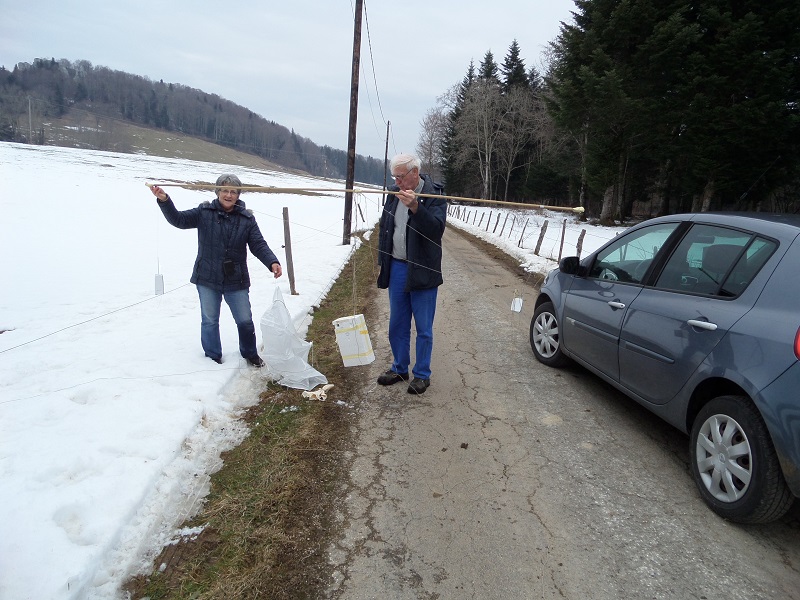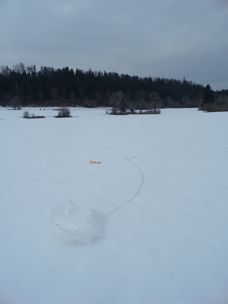 Le week-end dernier les pêcheurs étaient nombreux au bord du Doubs ou des différentes rivières alentour pour l’ouverture de leur sport favori. Rien d’étonnant à cela, ce qui est plus drôle c’est de croiser F5HLQ à la pêche en plein champ ! Non non, il n’a pas perdu le nord, il va à la pêche aux... Radiosondes météo de Payerne ( HB). Depuis le début de la semaine, une dizaine est tombée côté français au plus grand plaisir des spécialistes en goniométrie. La neige recouvre encore la campagne compliquant ainsi la recherche. Il ne faut pas avoir peur de se mouiller pour arriver à ses fins mais le jeu en vaut toujours la chandelle. Mardi à la ferme des Bouts de Nods, c’est un ensemble de 3 sondes qui nous attendaient : Une C34, une Vaisala, et une RS41SG. Mercredi Jean-Claude a déniché une C34 et une ozone, sans parachute, sans enveloppe de ballon, à croire qu’elle est tombée du ciel avec l’averse de neige.