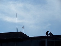Chaque année, nous sommes tributaires des aléas des installations mobiles, des heures d’ouverture, ainsi que des caprices de la propagation quasi inexistante par moments. Pourtant F5OAU et F4FLU avaient monté une antenne levy sur le toit de l’université (5eme étage ). La descente d’échelle à grenouille avoisinant les 25m alimentait un TS570D par l’intermédiaire d’une boite d’accord home made permettant de trafiquer sur les différentes bandes avec un ROS de 1.