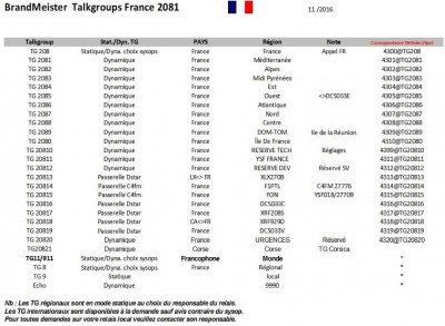 Le TS2 est quant à lui connecté sur 2 TG : le TG2084 qui correspond à la zone France Est et le 2281 qui correspond à la Suisse Francophone. Il est bien sûr possible d’activer tous les TG disponible sur le réseau brandmeister France ci-dessous :