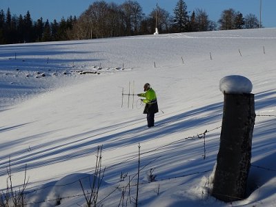 Nous avons tourné pendant une heure et demie dans la neige, parfois 30cm, avant que Jean-Claude F5HLQ ne le retrouve au pied d’un arbre. Les cordonnées 46°49’59’’ - 06°30’20’’.