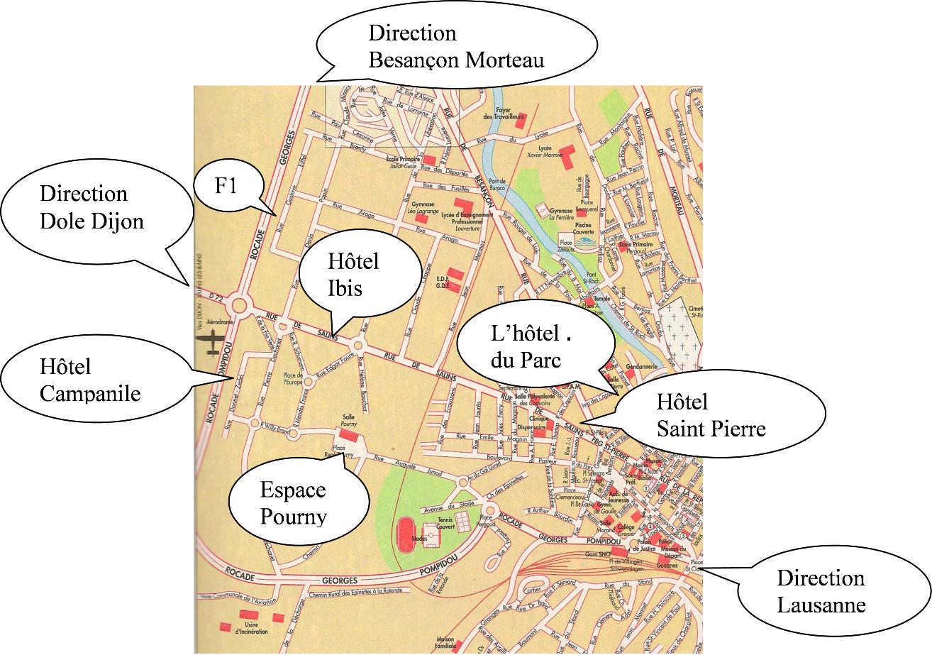 Depuis Dijon/Salins : A39 vers Dole. Puis N5 vers Poligny/Salins. Direction Salins. Pontarlier par la D472, puis D72 (1). Au rond point de l’Europe ( garage Renault ) prendre direction centre ville, ZAC des Grands Planchants.