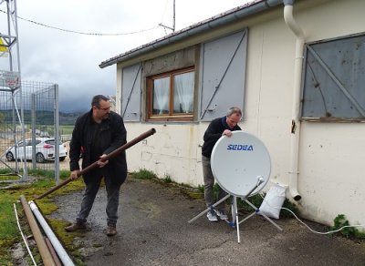 L’après-midi, d’autres fervents de réunion se sont joints à eux, pour assister à l’exposé détaillé de Christophe, F4FLU, sur le satellite Oscar-100 et les possibilités qu’il offre, tous modes confondus. L’installation d’une parabole a permis les démonstrations qui confirmaient la théorie.