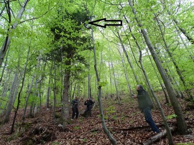 Ce jeudi 13 mai, après-midi, les chasseurs furent surpris de se retrouver si nombreux pour traquer la petite RS 41. Partie de Payerne, elle a longée la rive du lac de Neuchatel, profitant d’une vue magnifique sur les Alpes Bernoises, avant de survoler ce lac à une altitude maximum de 35690m. Passant sur l’autre rive, sa balade pris fin vers Valangin. Le premier arrivé à proximité du lieu de chute fut HB9HLI (de Neuchâtel )suivi de F4GVT, F4EWI, F5UAY et Jeanjean. Nos 5 chasseurs ont dû s’engager dans une forêt très pentue et très glissante. Ce fut Thierry qui, le premier, découvrit la sonde pendue à 6m de haut sur un petit sapin en 47.05796, 6.97476.