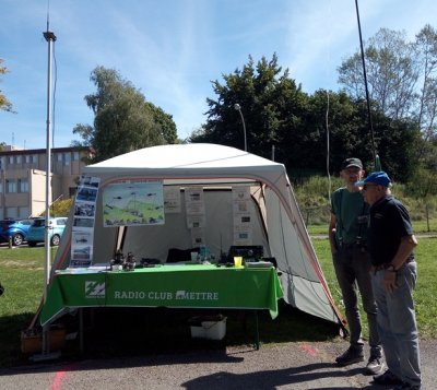 Nous y avons présenté nos activités purement radio amateur avec un TMD 700 et une Diamond X50 qui nous a permis de recevoir le R7 de Salins. Pour la réception décamétrique une canne à pêche de 7 m soutenait sur toute sa longueur un câble audio muni d’un adaptateur 1/9 à sa base. Sur le Kenwood TS 850. nous avons pu suivre le contest du Field Day en 40m. Ne disposant pas d’électricité sur le site, nous avions alimenté ces deux appareils sur batteries.