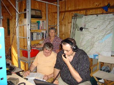 Un travail d’équipe : Dominique F1DLW cherche à faire le contact sur 144 MHz tandis que Jean Michel "trafique" sur 432 MHz.
