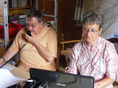 Dominique F1DLW lance les appels avec insistance. Marie F5UAY saisit les indicatifs sur PC.