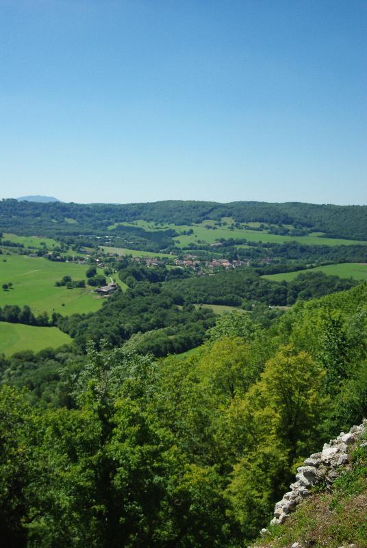 Situé sur un promontoire, il domine la vallée de la Loue entre Cléron et Ornans. A ses pieds le moulin Boillon DMF 25 006.