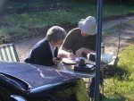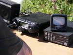 Jean-Michel et Jeanjean ont installé la Bazooka, le FT-857 relié à la boîte d’accord, alimenté par une batterie supplémentaire. Nous avons commencé notre premier contact à 6h45 TU. Nous avons terminé à 9h40 alors que Ginette et Bernard F4FUS arrivaient pour le pique-nique et une balade à pied.