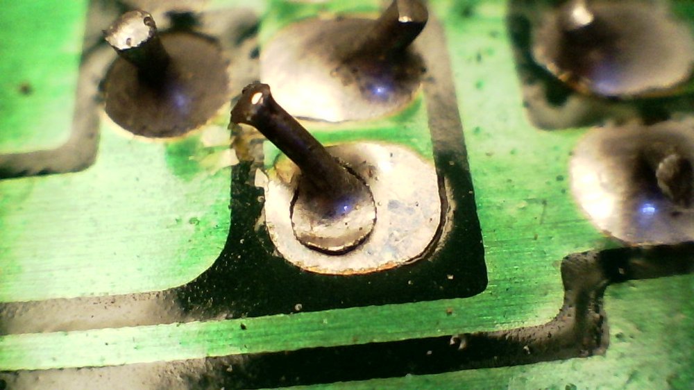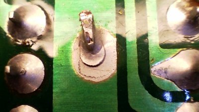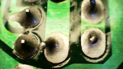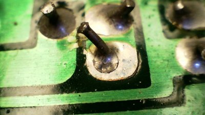 Cette trace de cercle si caractéristique au milieu de la soudure est à surveiller de très très près car elle n’est pas toujours facile à voir, c’est pour ça que j’exerce une petite force sur les pattes, si c’est fragile, ça va craquer.