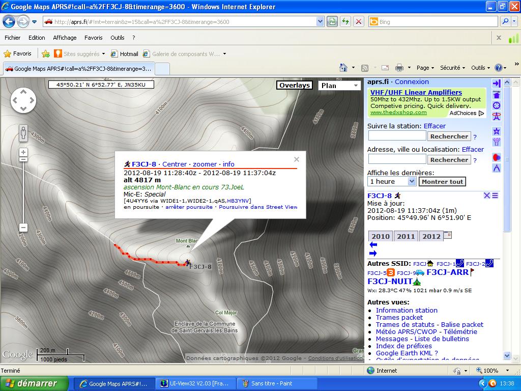 Le 19/08/12, ils sont arrivés au sommet du Mont Blanc, avec le matériel pour transmettre leur position (APRS) et communiquer avec ceux qui restent en bas.