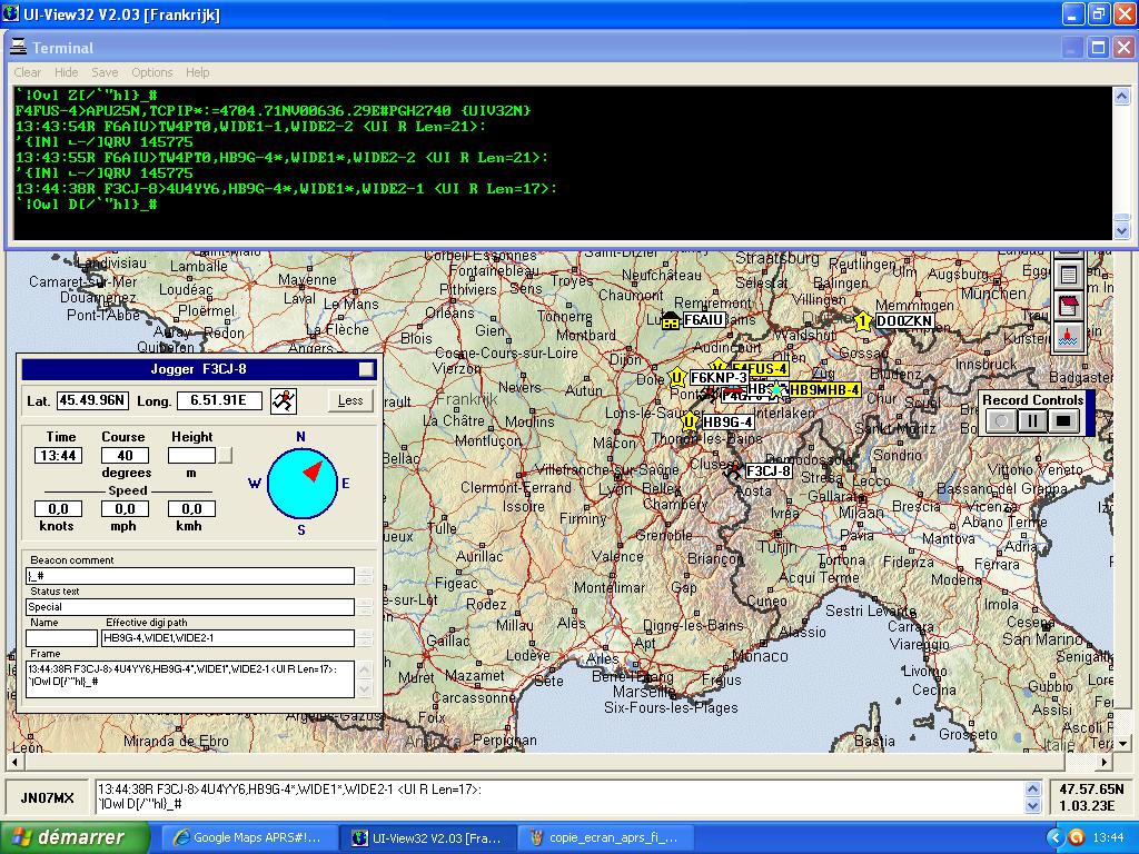 Les digipeaters HB9G-4 et F6KNP-3 ont relayé les trames F3CJ-4.