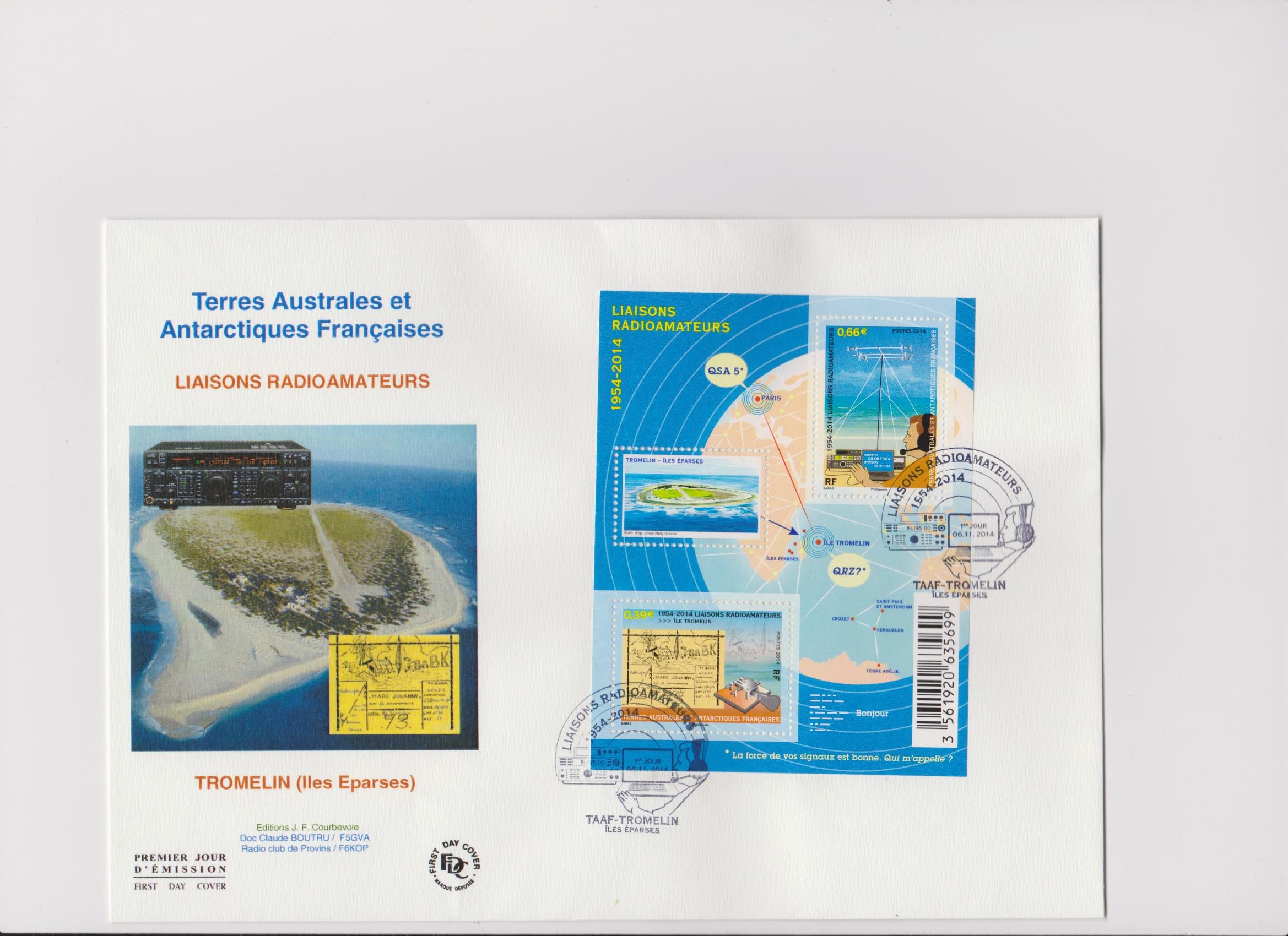 Il était disponible au salon philatélique d’automne à l’Espace Champerret à Paris. Une liaison radio exceptionnelle a été établie entre le stand des TAAF, animé par une équipe de F6KOP faisant découvrir le radio amateurisme, et l’île de Tromelin.