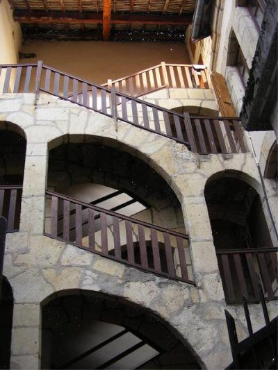 Il faut lever la tête en se baladant dans la rue de la République. Des fenêtres sont habillées de bois avec des formes variées. De très belles ferronneries ornent les balcons. |