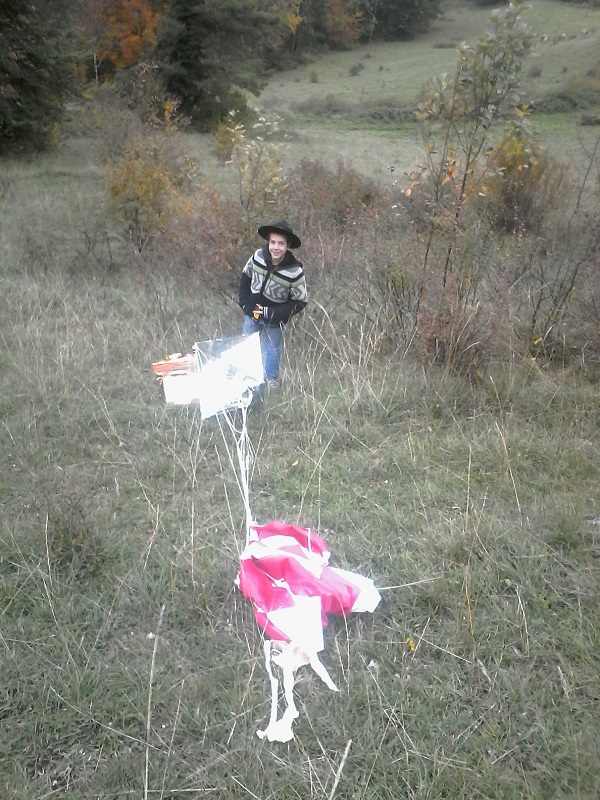 De leur côté Stéphane F1SRX accompagné de Théo et Jean-Claude F5HLQ couraient après le ballon parti de la fête de la science de Belfort. Ils l’ont retrouvé facilement à une soixantaine de kilomètres du départ vers Bienne en Suisse. Saluons une fois de plus leur performance !