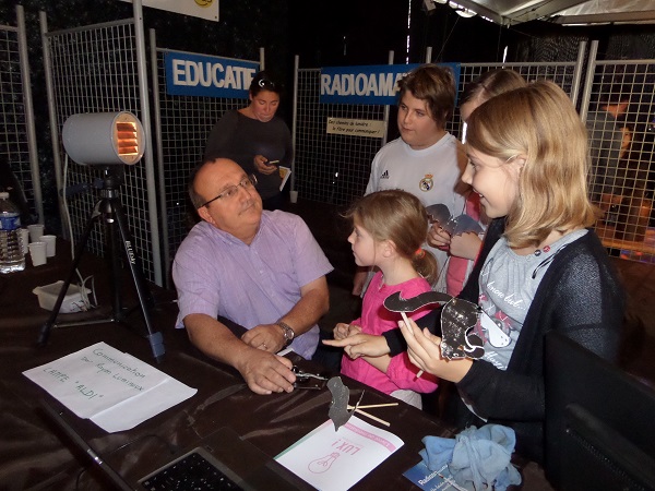 Au même stand, Gérard F1PUZ assurait l’animation de son atelier « des chemins de lumière, ou la fibre pour communiquer », mais aussi « les électrons font-ils de la lumière ? »