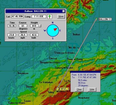 La « station automatique » du Haut Doubs a enregistré la dernière trame reçue à 16h36, distance 91 km.