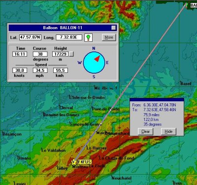 18h27, j’écoute Stéphane F1SRX sur le relais du PETIT BALLON : « Le ballon a été retrouvé à 17h30, au sol, dans un pré au Nord-Ouest de FRIBOURG »