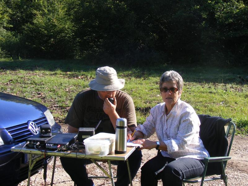 Jean-Michel et Jeanjean ont installé la Bazooka, le FT-857 relié à la boîte d’accord, alimenté par une batterie supplémentaire. Nous avons commencé notre premier contact à 6h45 TU. Nous avons terminé à 9h40 alors que Ginette et Bernard F4FUS arrivaient pour le pique-nique et une balade à pied.